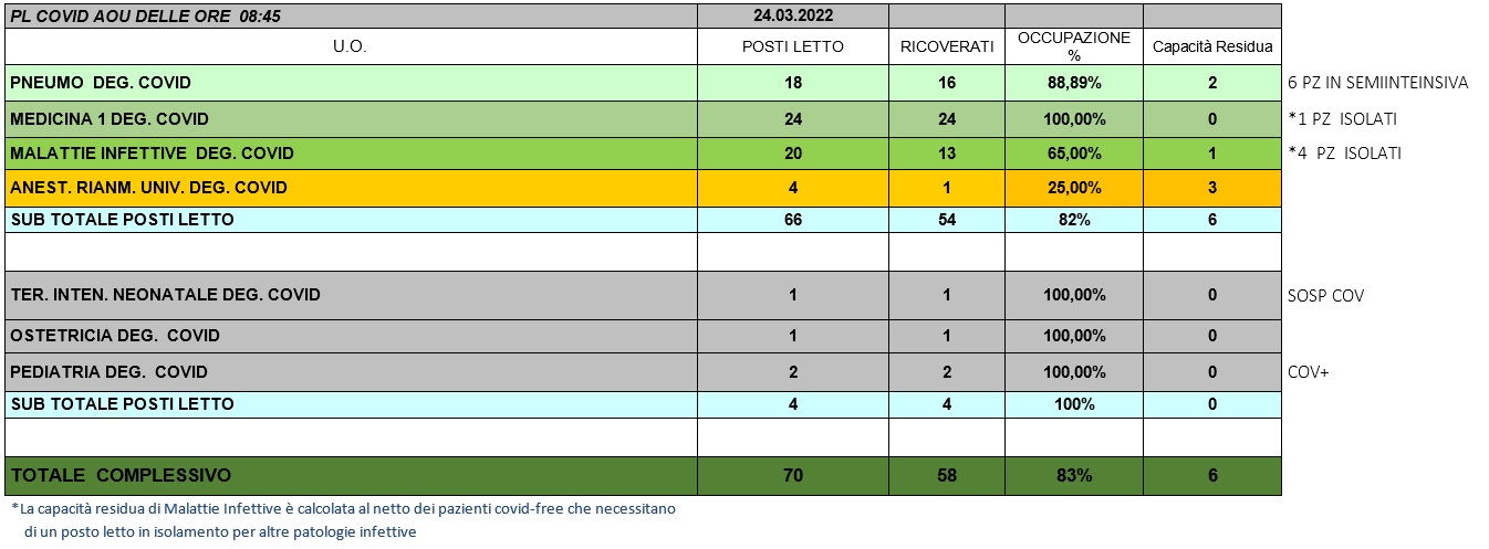 Situazione posti letto reparti Covid 24 marzo 2022 - ore 8.45.jpg