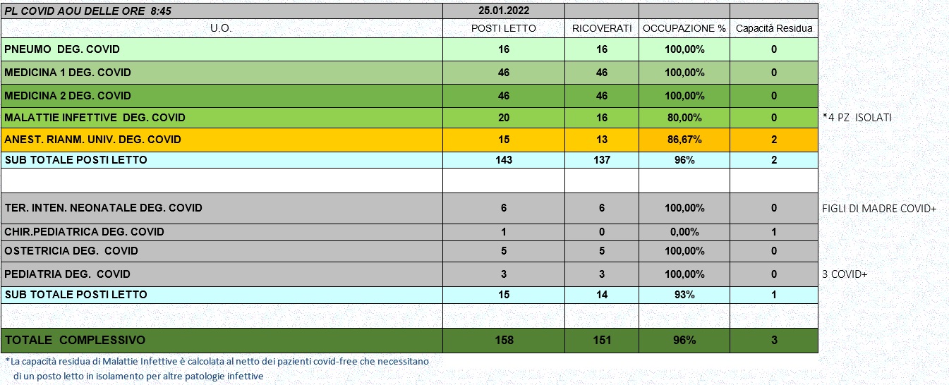 Situazione posti letto reparti Covid 25 Gennaio 2022 - ore 8.45.jpg