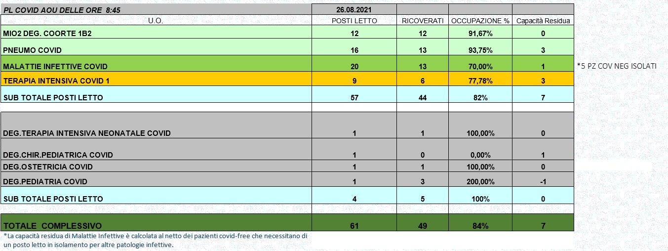 Situazione posti letto reparti Covid 26 agosto 2021 - ore 8.45.jpg