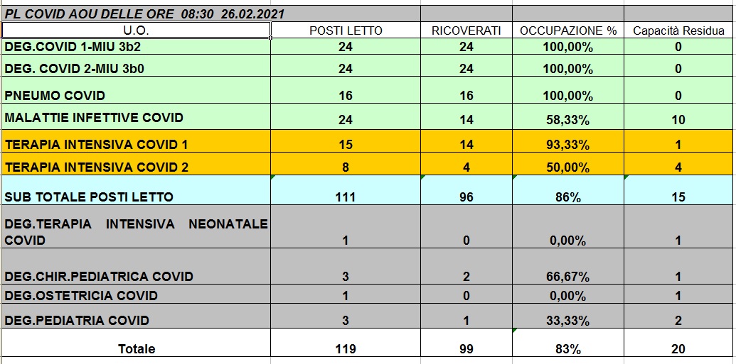 Situazione posti letto reparti Covid 26 febbraio 2021 - ore 8.30.jpg