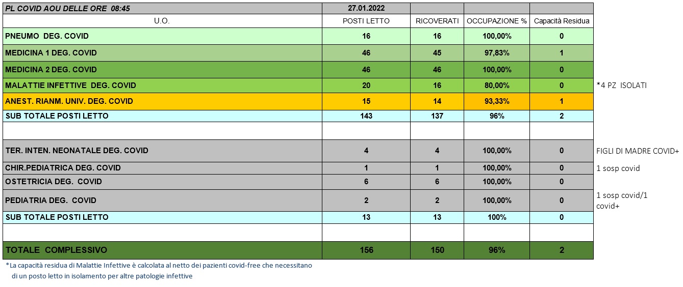 Situazione posti letto reparti Covid 27 Gennaio 2022 - ore 8.45.jpg