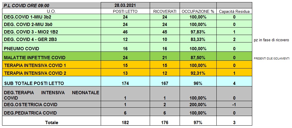Situazione posti letto reparti Covid 28 marzo 2021 - ore 8.45.jpg
