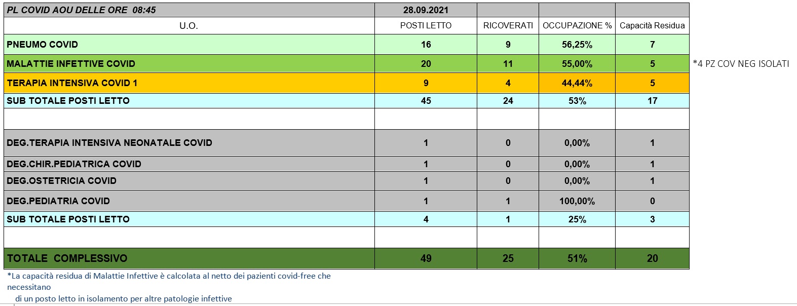 Situazione posti letto reparti Covid 28 settembre 2021 - ore 8.45.jpg