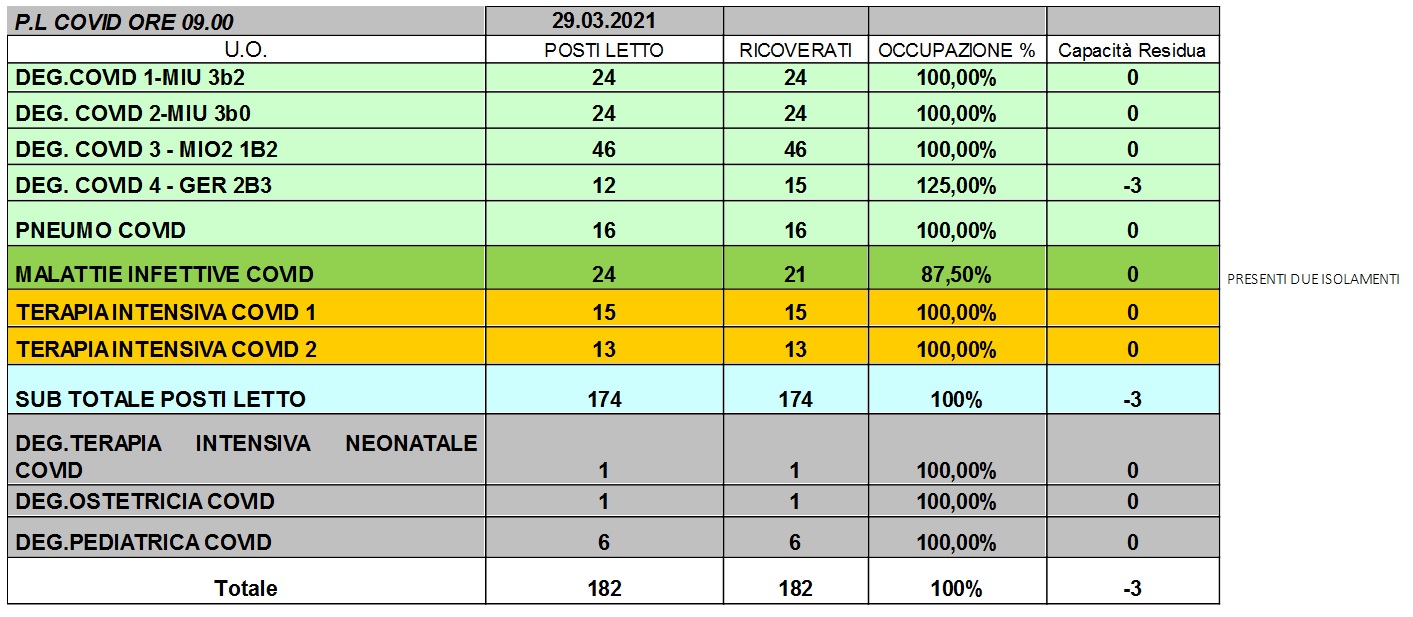 Situazione posti letto reparti Covid 29 marzo 2021 - ore 8.45.jpg