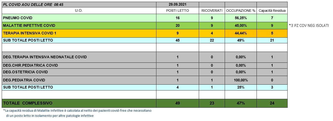 Situazione posti letto reparti Covid 29 settembre 2021 - ore 8.45.jpg
