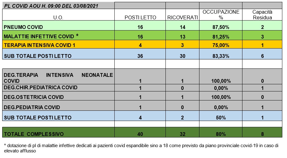 Situazione posti letto reparti Covid 3 agosto 2021 - ore 8.30.jpg