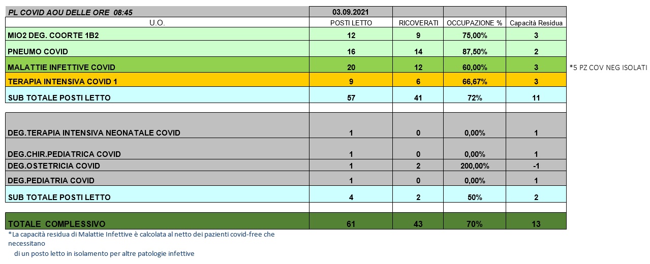 Situazione posti letto reparti Covid 3 settembre 2021 - ore 8.30.jpg