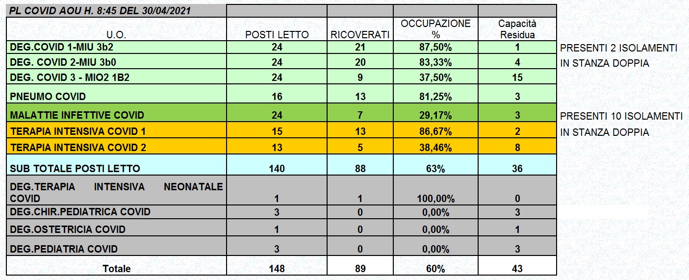 Situazione posti letto reparti Covid 30 aprile 2021 - ore 8.30.jpg
