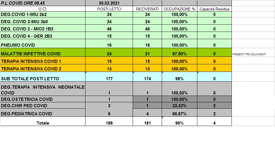 Situazione posti letto reparti Covid 30 marzo 2021 - ore 8.45.jpg