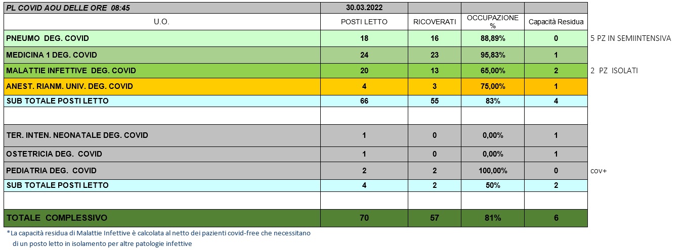 Situazione posti letto reparti Covid 30 marzo 2022 - ore 8.45.jpg