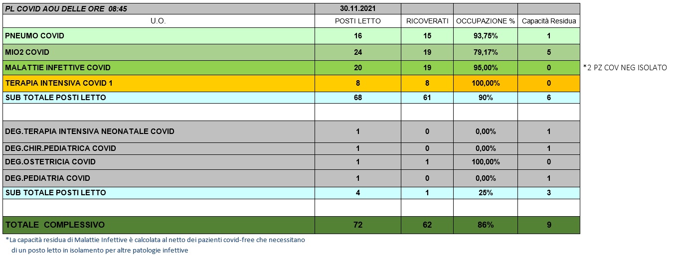 Situazione posti letto reparti Covid 30 novembre 2021 - ore 8.45.jpg