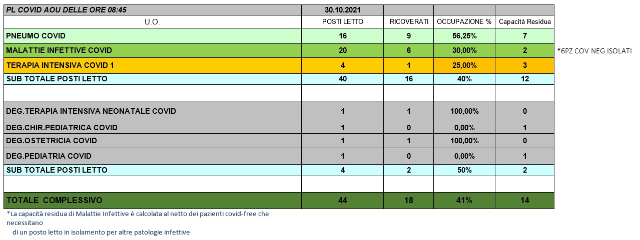 Situazione posti letto reparti Covid 30 ottobre 2021 - ore 8.30.jpg