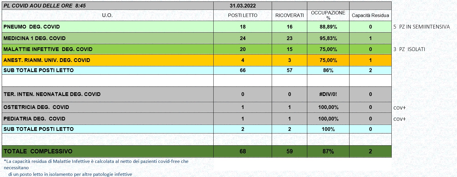 Situazione posti letto reparti Covid 31 marzo 2022 - ore 8.45.jpg