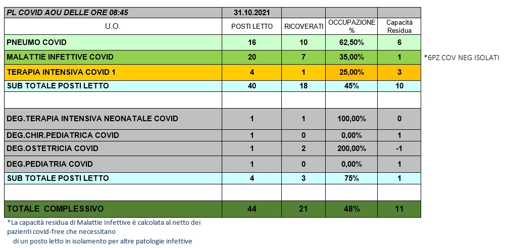 Situazione posti letto reparti Covid 31 ottobre 2021 - ore 8.30.jpg