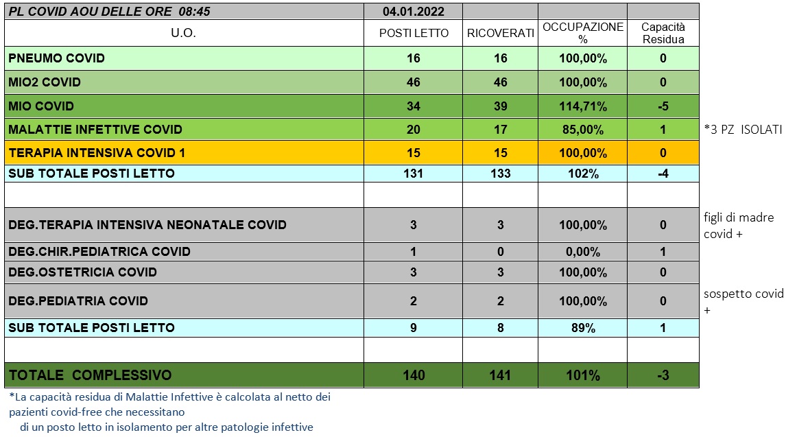 Situazione posti letto reparti Covid 4 Gennaio 2022 - ore 8.45.jpg