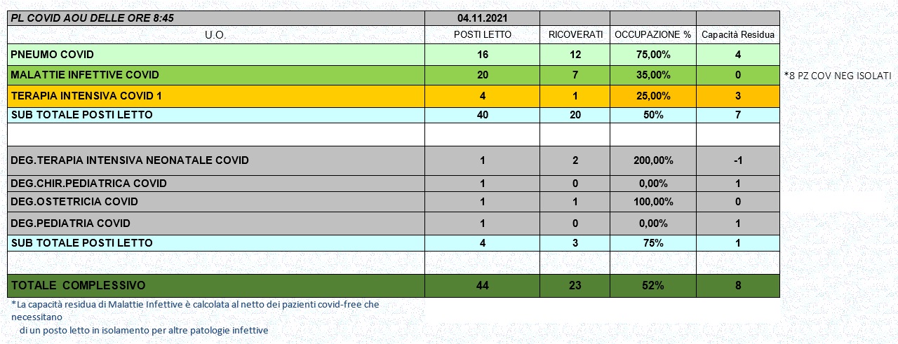 Situazione posti letto reparti Covid 4 novembre 2021 - ore 8.30.jpg