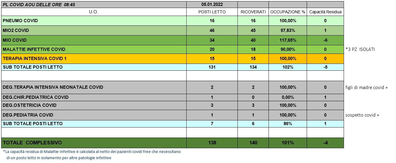 Situazione posti letto reparti Covid 5 Gennaio 2022 - ore 8.45.jpg