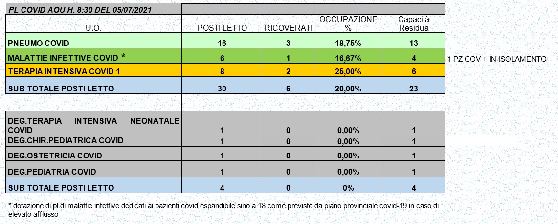 Situazione posti letto reparti Covid 5 luglio 2021 - ore 8.30.jpg