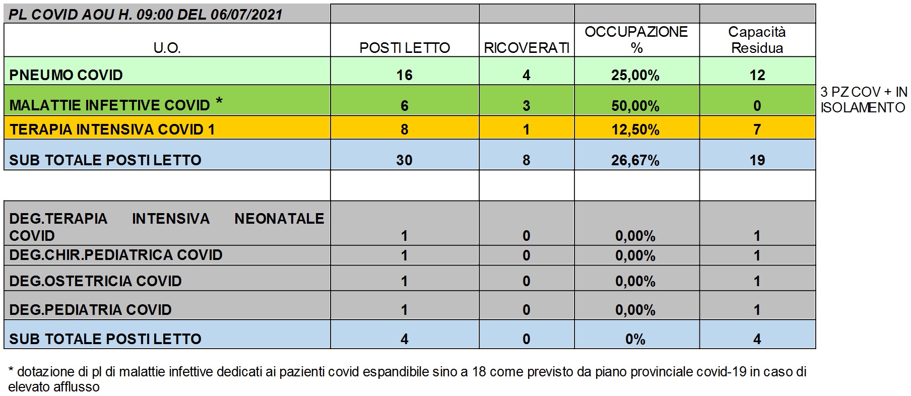 Situazione posti letto reparti Covid 6 Luglio 2021 - ore 9.00.jpg