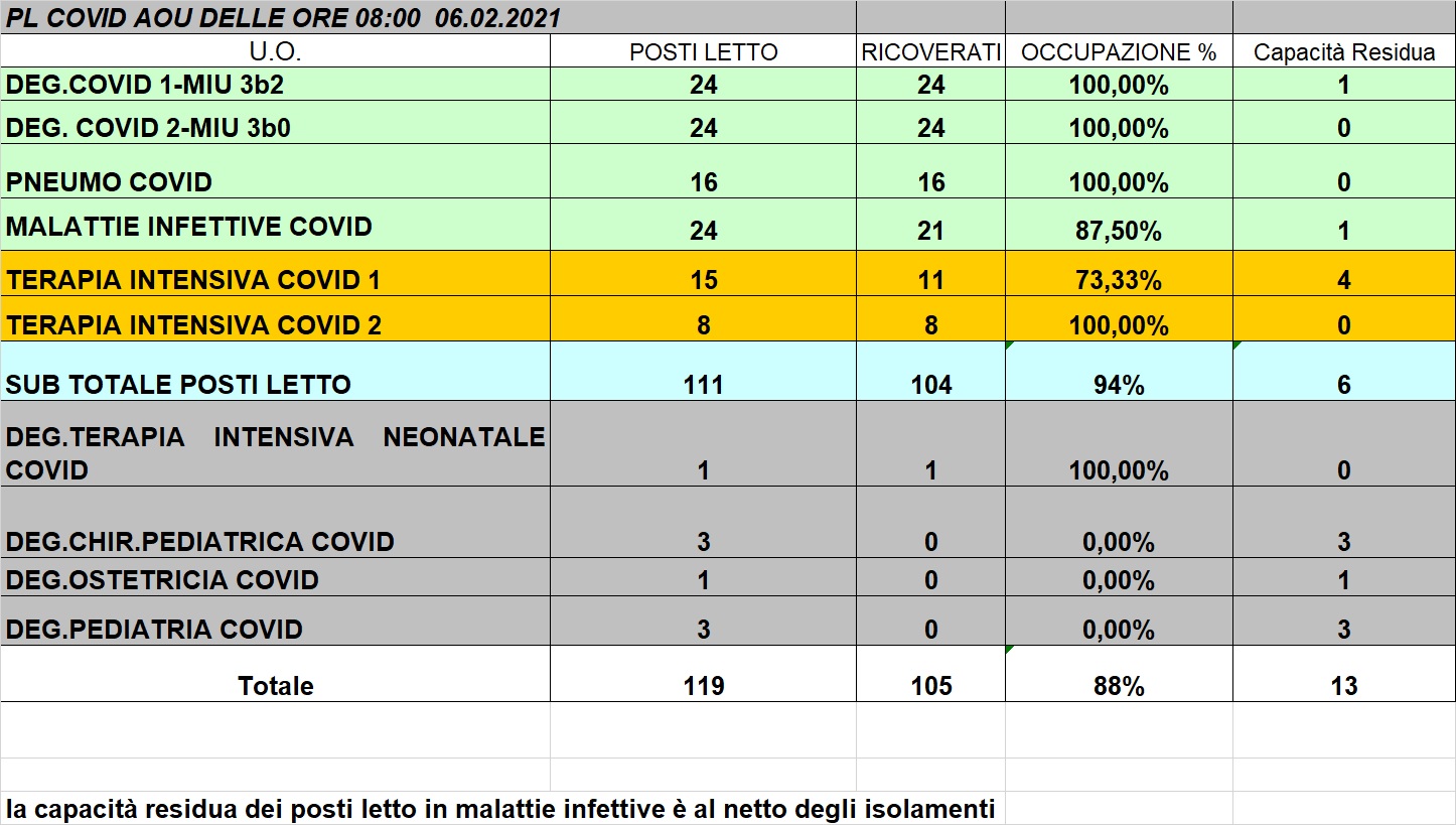 Situazione posti letto reparti Covid 6 febbraio 2021 - ore 8.00.jpg