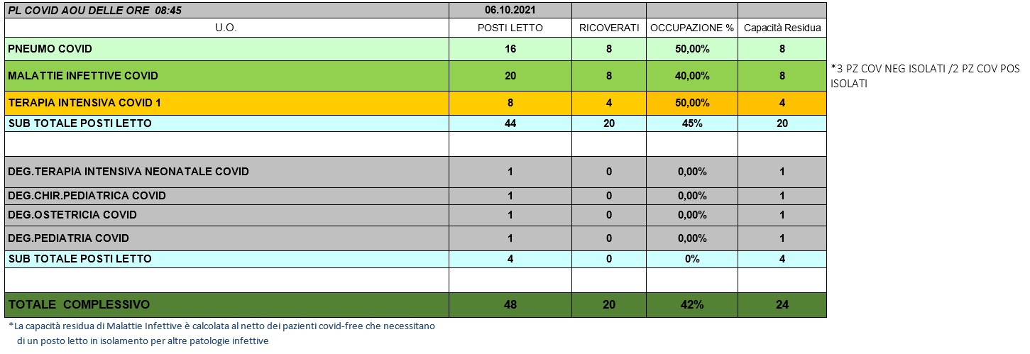 Situazione posti letto reparti Covid 6 ottobre 2021 - ore 8.45.jpg