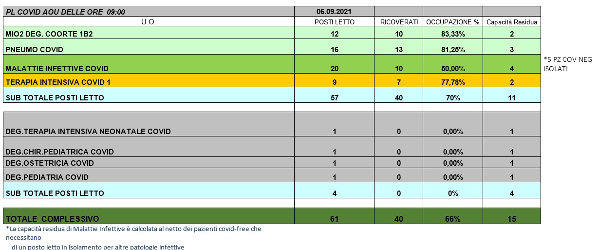 Situazione posti letto reparti Covid 6 settembre 2021 - ore 8.30.jpg