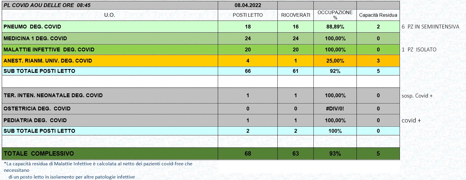Situazione posti letto reparti Covid 8 aprile 2022 - ore 8.45.jpg