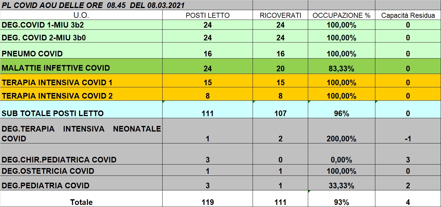 Situazione posti letto reparti Covid 8 marzo 2021 - ore 8.45.jpg