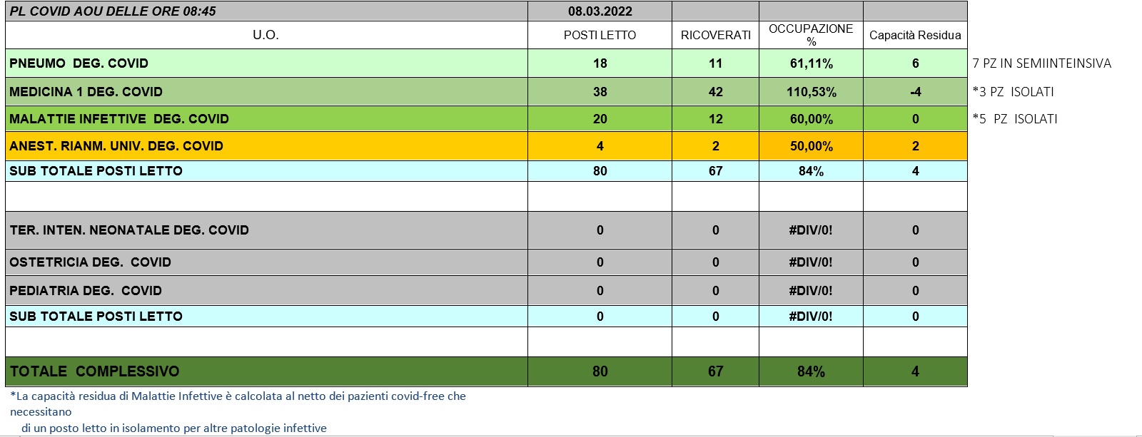 Situazione posti letto reparti Covid 8 marzo 2022 - ore 8.45.jpg