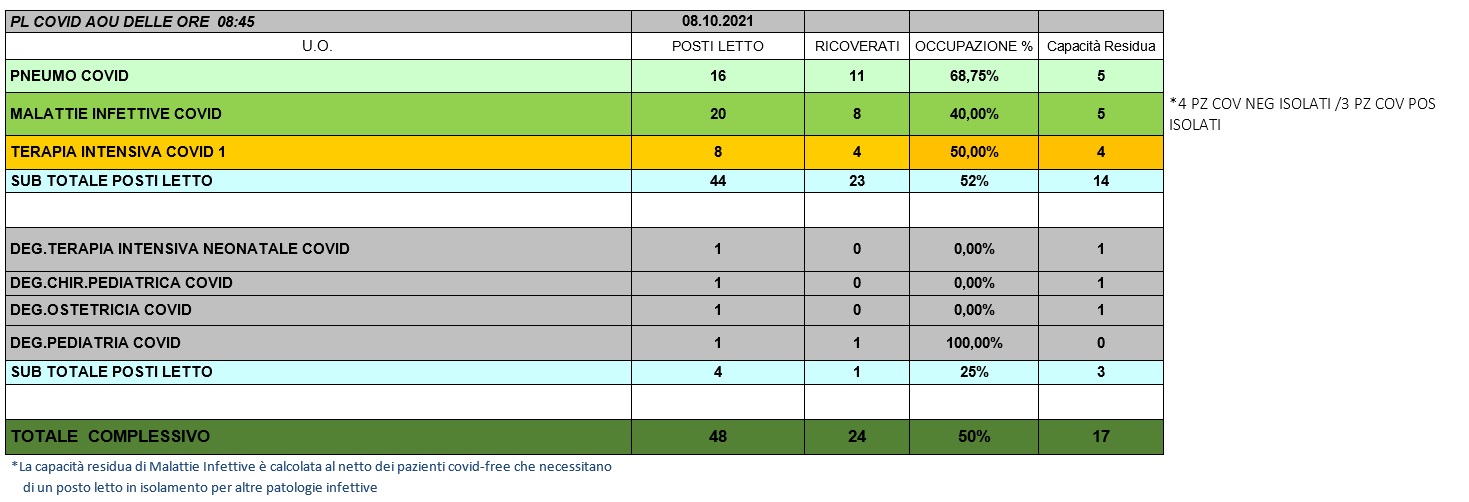 Situazione posti letto reparti Covid 8 ottobre 2021 - ore 8.45.jpg