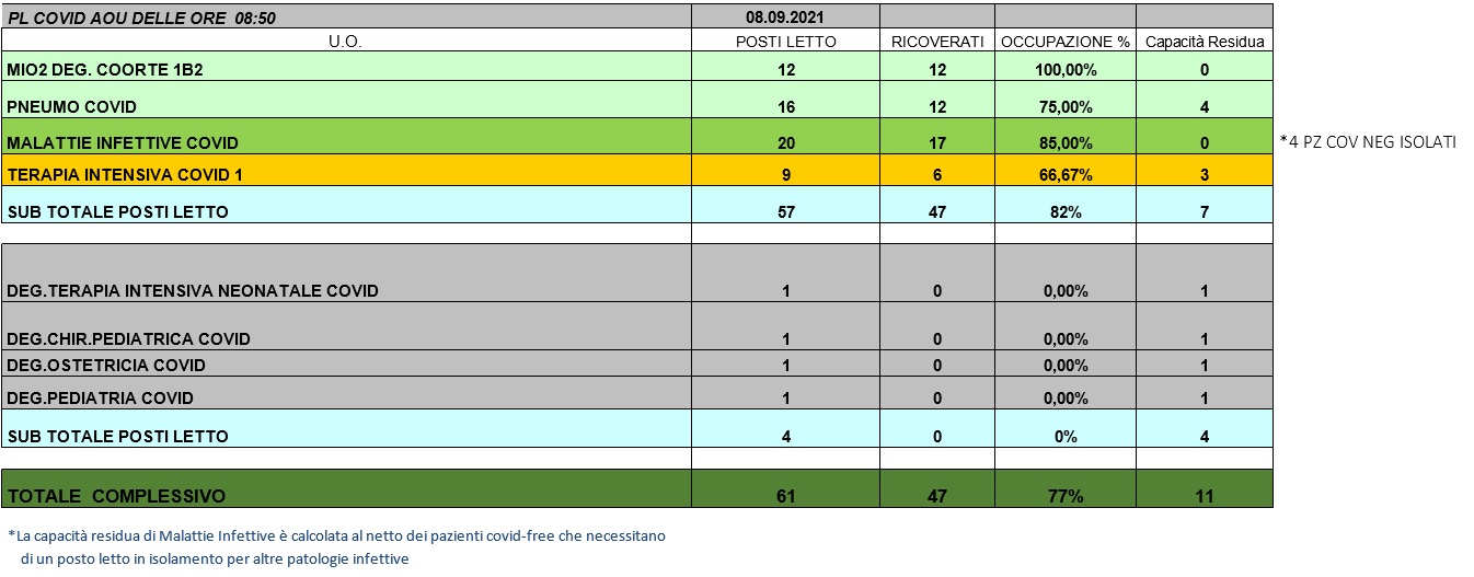 Situazione posti letto reparti Covid 8 settembre 2021 - ore 8.50.jpg