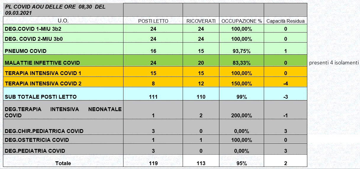 Situazione posti letto reparti Covid 9 marzo 2021 - ore 8.30.jpg