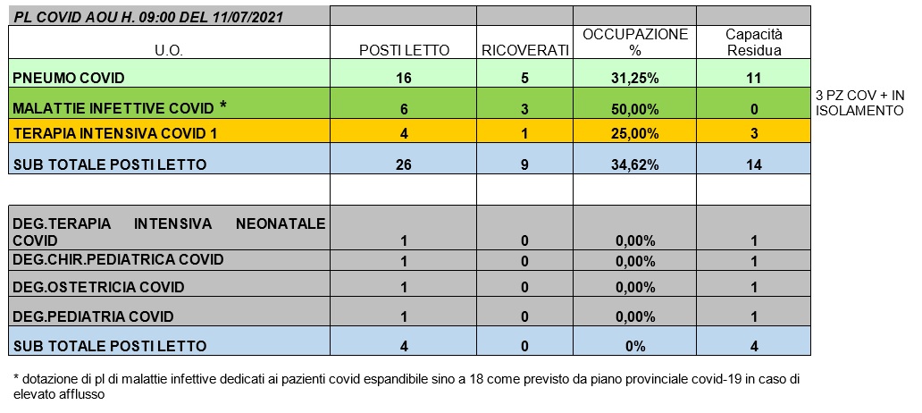 Situazione posti letto reparti Covid11 luglio 2021 - ore 8.30.jpg