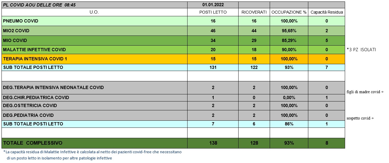 Situazione posti letto reparti Covid 1 Gennaio 2022 - ore 8.45.jpg