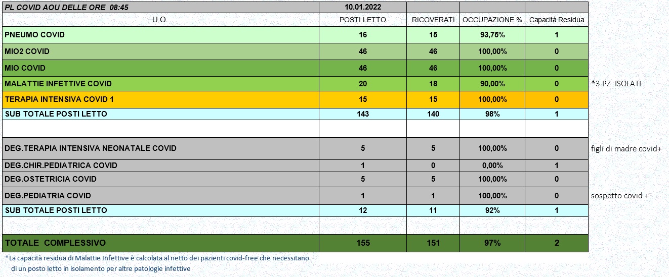 Situazione posti letto reparti Covid 10 Gennaio 2022 - ore 8.45.jpg