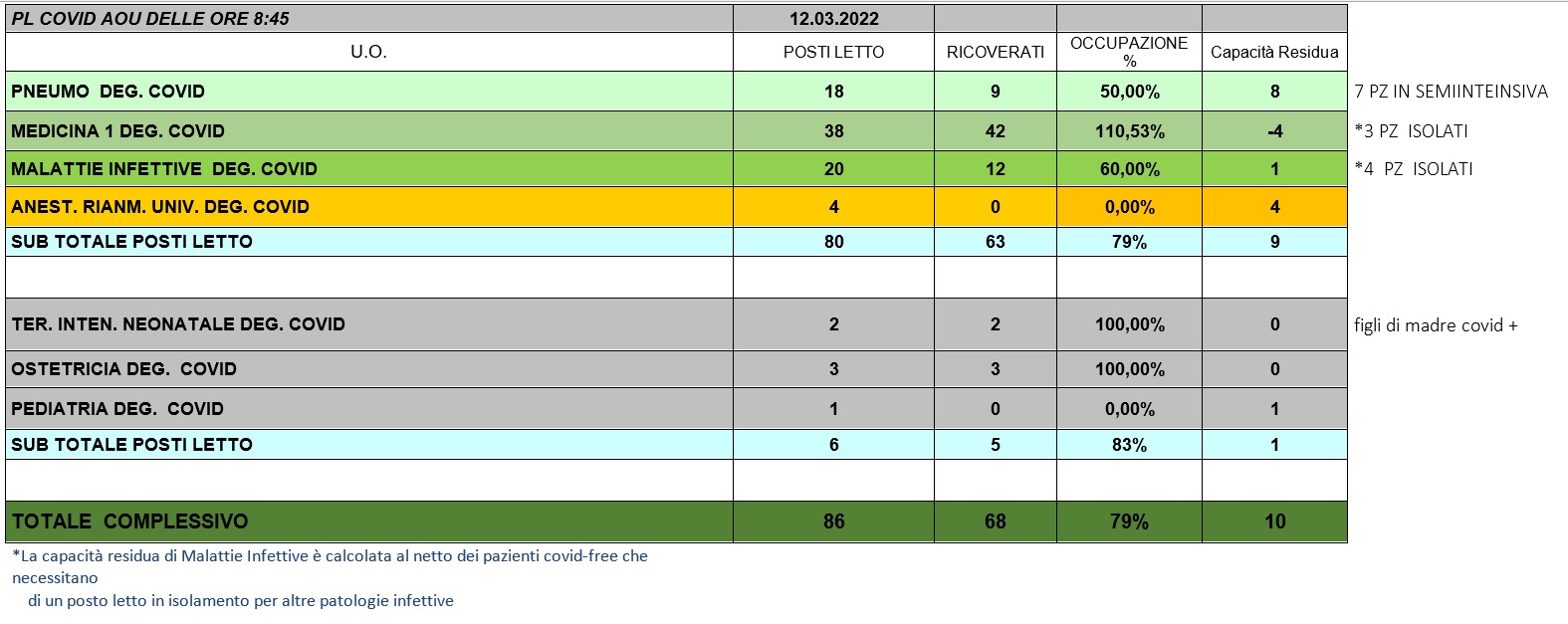Situazione posti letto reparti Covid 12 marzo 2022 - ore 8.45.jpg