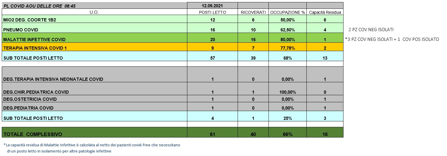 Situazione posti letto reparti Covid 12 settembre 2021 - ore 8.45.jpg