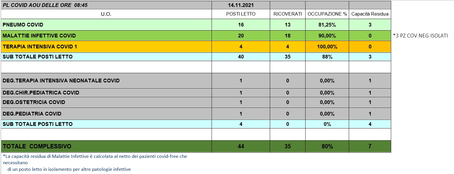 Situazione posti letto reparti Covid 14 novembre 2021 - ore 8.45.jpg