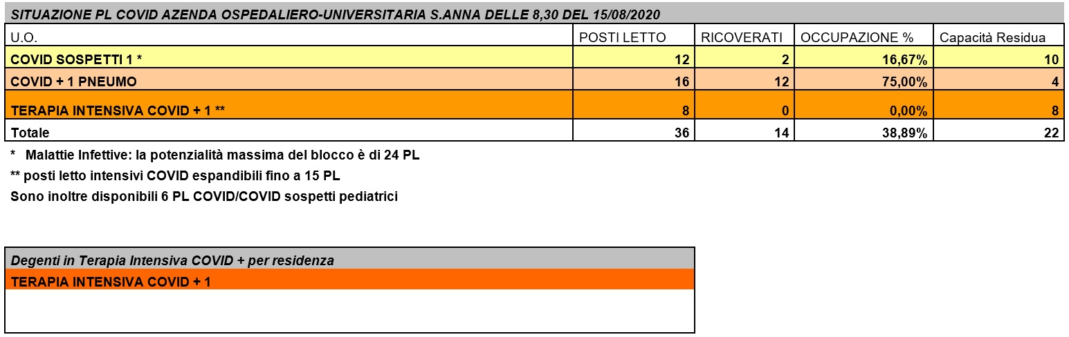 Situazione posti letto reparti Covid - 15 agosto 2020 - ore 8.30.jpg