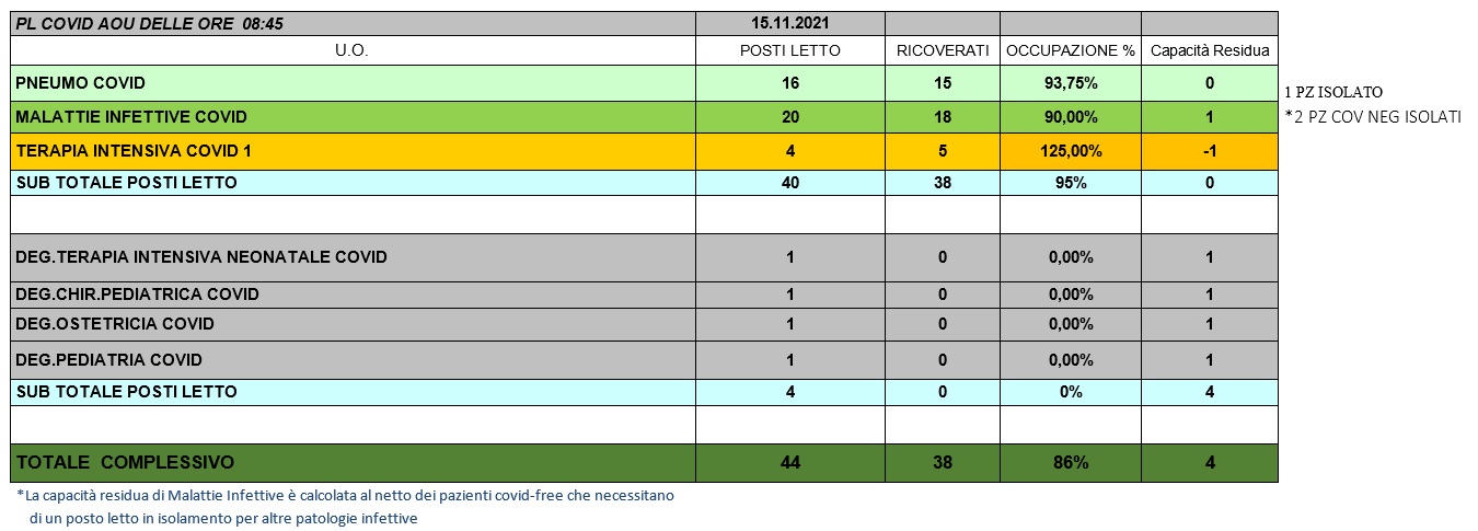 Situazione posti letto reparti Covid 15 novembre 2021 - ore 8.45.jpg