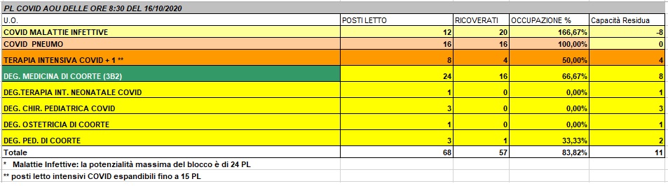Situazione posti letto reparti Covid - 16 ottobre 2020 - ore 8.30.jpg