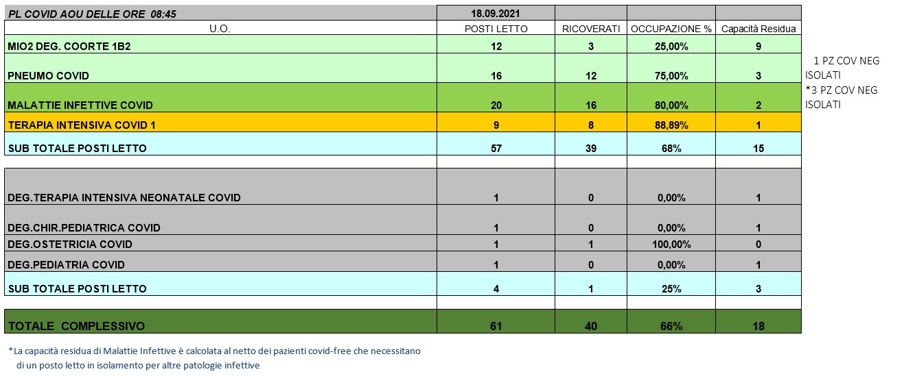 Situazione posti letto reparti Covid 18 settembre 2021 - ore 8.45.jpg