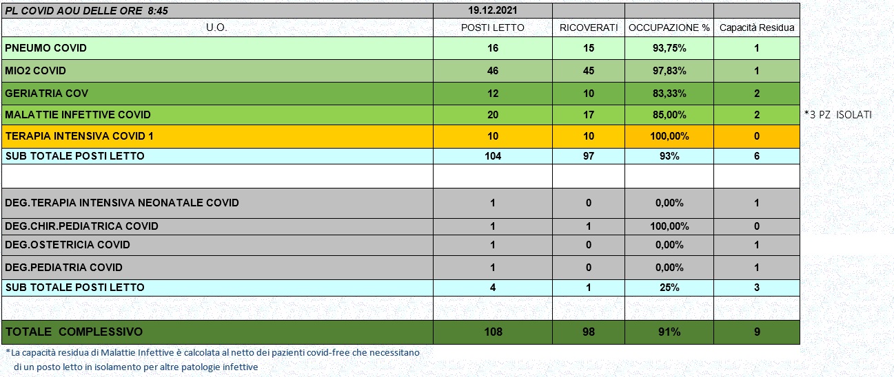 Situazione posti letto reparti Covid 19 dicembre 2021 - ore 8.45.jpg