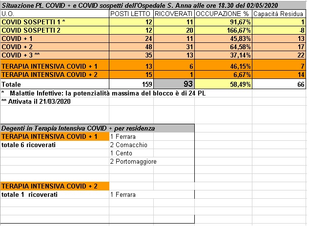 Situazione posti letto reparti Covid - 2 maggio 2020 - ore 18.30.jpg