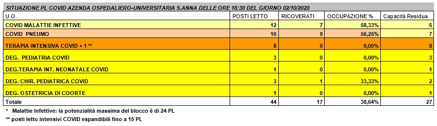 Situazione posti letto reparti Covid - 2 ottobre 2020 - ore 18.30.jpg