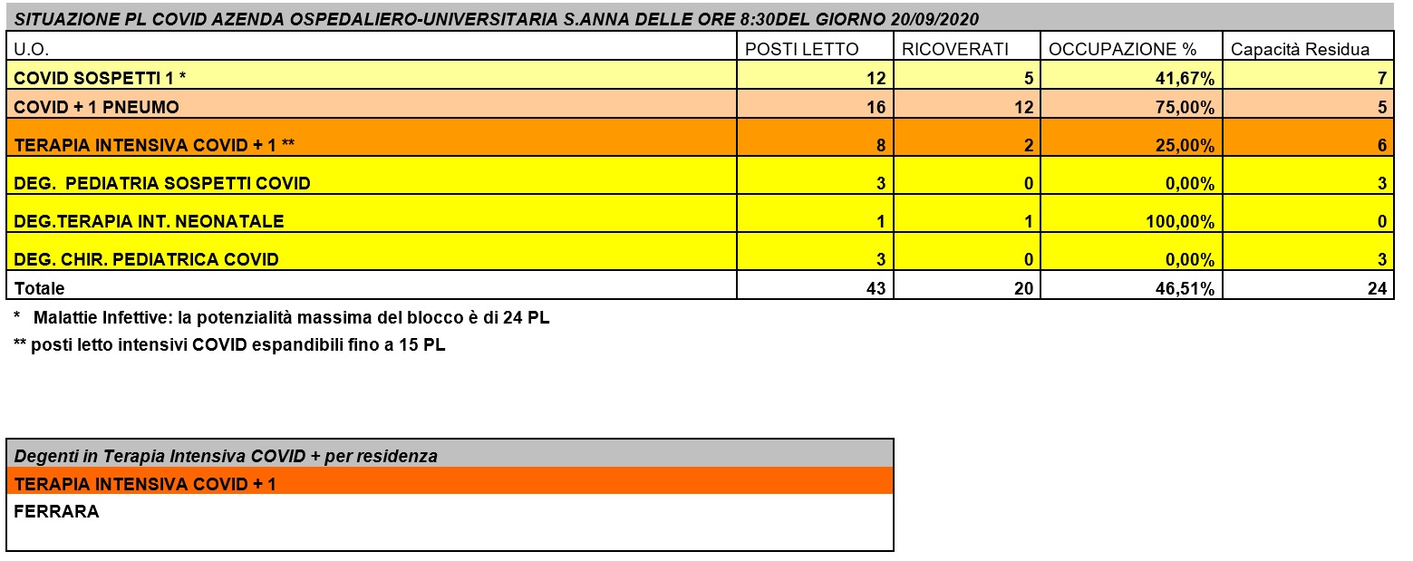 Situazione posti letto reparti Covid - 20 settembre 2020 - ore 8.30.jpg