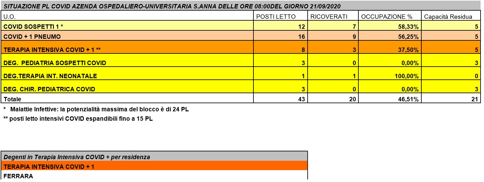 Situazione posti letto reparti Covid - 21 settembre 2020 - ore 8.30.jpg