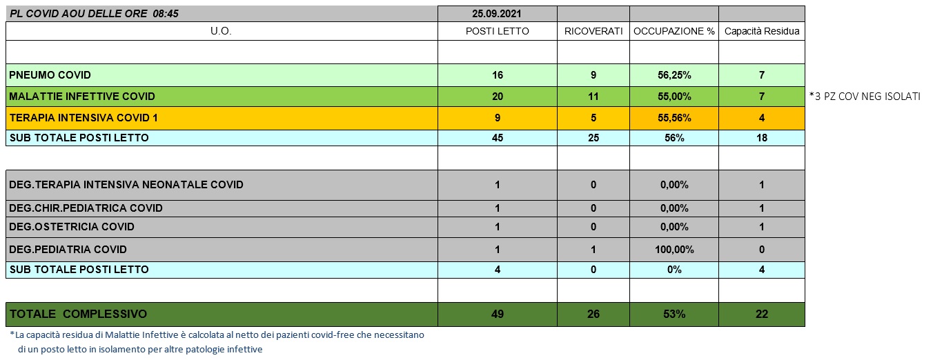 Situazione posti letto reparti Covid 25 settembre 2021 - ore 8.45.jpg