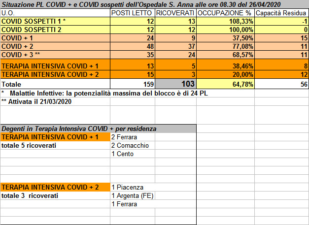 Situazione posti letto reparti Covid - 26 aprile 2020 - ore 8.30.jpg