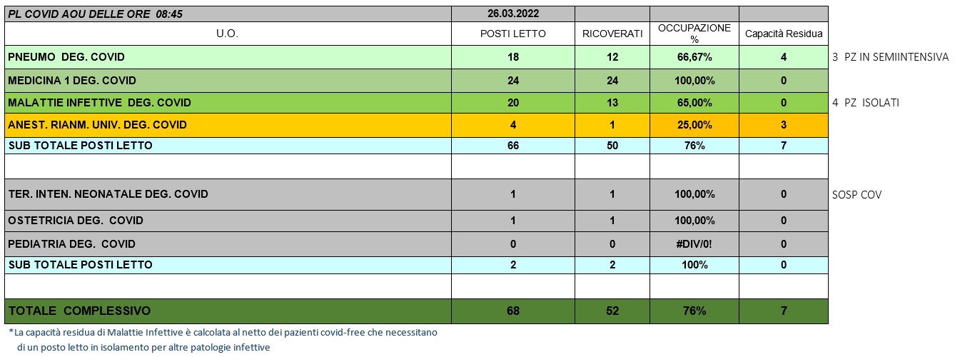 Situazione posti letto reparti Covid 26 marzo 2022 - ore 8.45.jpg